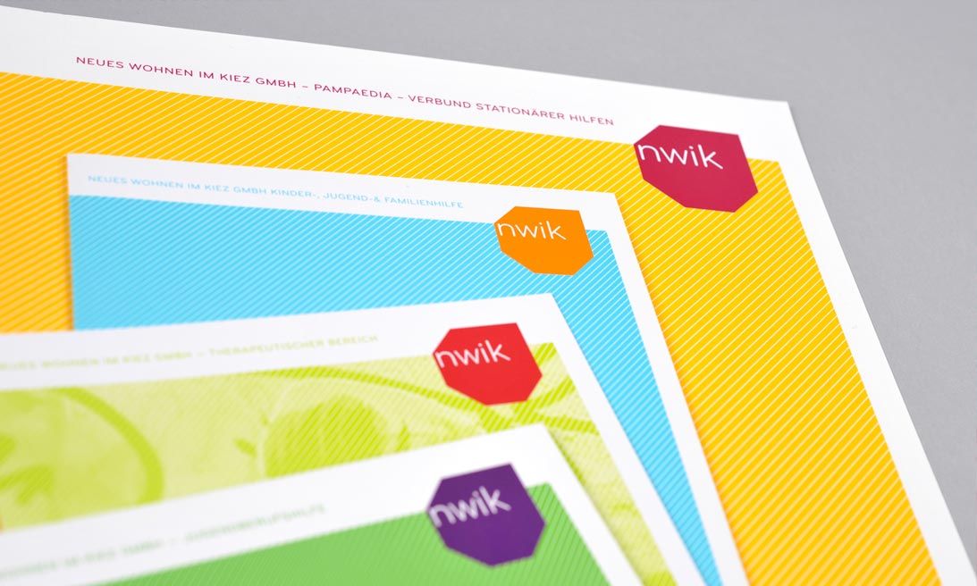 Dieser Verweis ist ein Auszug aus dem aktuellen CD-Manual, in dem alle Ideen, Elemente, Schriften, Farben, Beispiele für Medien zusammengefasst sind. Ähnlich vielfältig wie das innerstädtische Leben ist die Farbwelt des Trägers. Den Projekten werden individuell und projektspezifisch Farben zugewiesen.